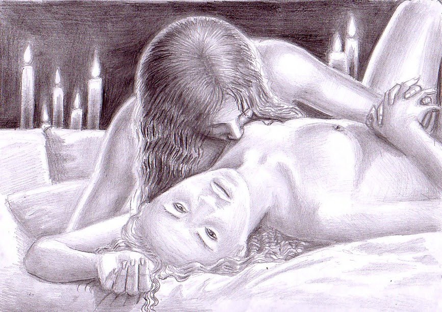 De atatea ori imi doresc sa fiu iubita, sa simt cum caldura iubirii ma inconjoara si ma acopera. Ieri am realizat acest desen imaginandu-mi ca stau intinsa in lumina lumanarilor iar fiinta iubita e langa mine si imi alinta trupul fin cu sarutari dulci si tandre
