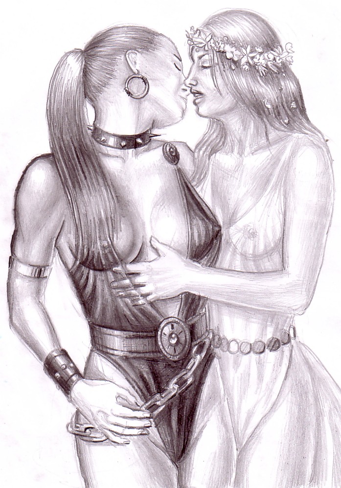 In acest desen in creion am suprins momentul in care Zeus travestit o saruta pe nimfa Callisto