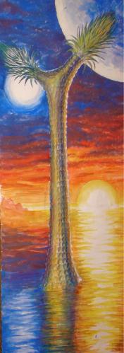 Sigillaria, unul dintre arborii din carbonifer, pictura in acuarela