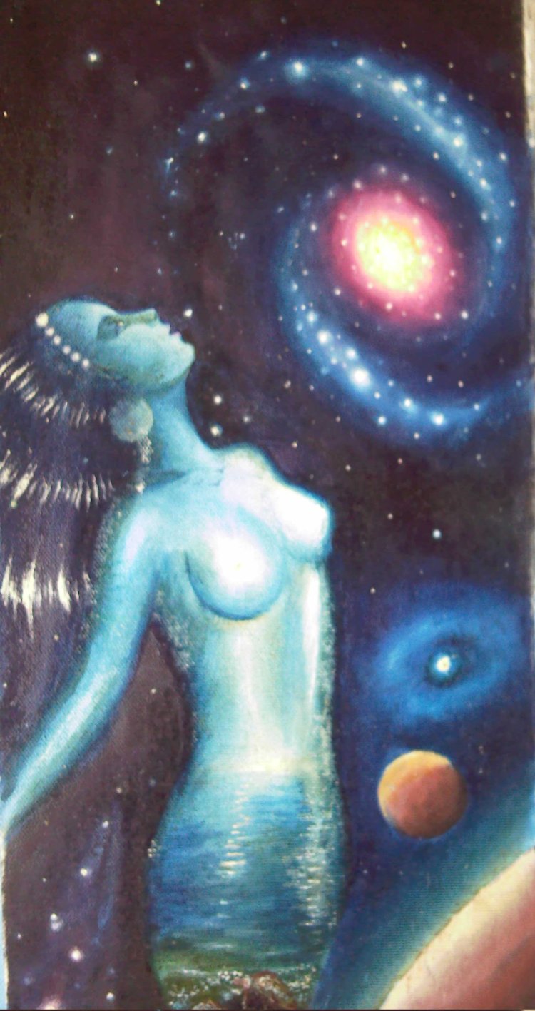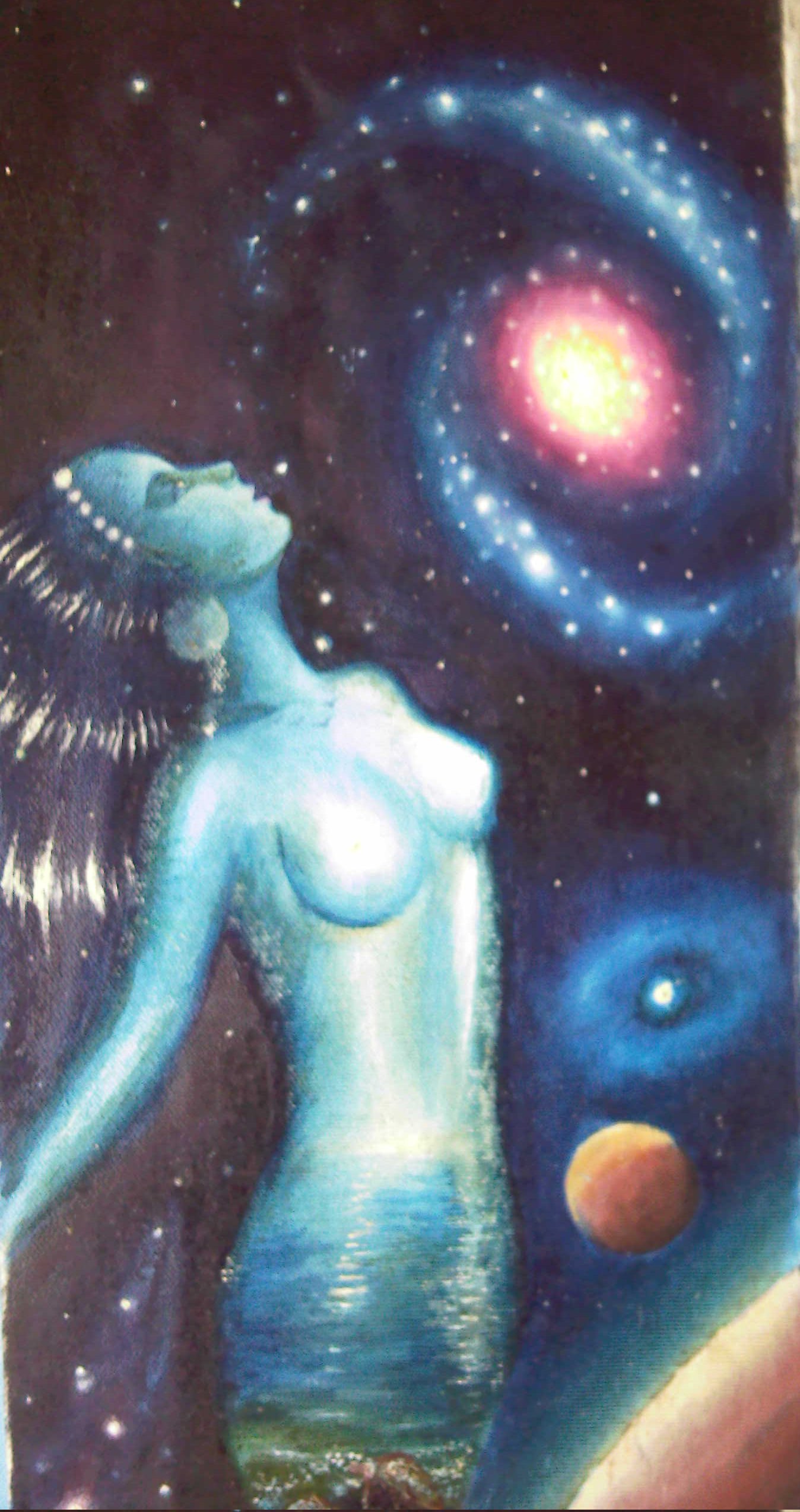 Acestea sunt câteva picturi pe care le-am realizat in ultimii 10 ani cu gândul la idealul meu feminin. Ea este centrul universului meu. O vad in fiecare stea si in fiecare galaxie a cosmosului meu mental. imaginea ei. Ea e Eva ancestrala, eternul feminin plin de lumina si de iubire ce radiază din interior precum natura datatoare de viața. In liceu am mai făcut si alte picturi reprezentad-o pe ea, unele la dimensiunile corpului meu. Pentru a realiza buzele celor in dimensiunile corpului meu sărutam hârtia după ce mă dădeam cu ruj. Emoția pe care o trăiam in acel moment era foarte puternica, ca si cum in locul hârtiei ar fi fost acea Eva cosmica. Si acum imi place sa mă uit peste aceste tablouri si sa-mi imaginez ca sunt eu cu ea printre stele si galaxii