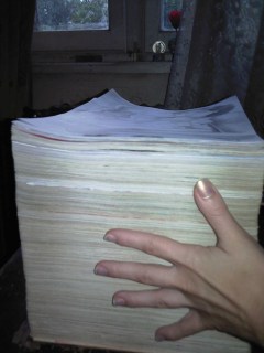 Acest munte de desene masoara 21 cm si cantareste 18 kg, 21 cm si 18 kg de vise de iubire care imi umleau zilele si noptile in care ma simteam atat de singura si simteam si eu nevoia de a iubi si de a fi iubita, 21 de cm si 18 kg de ganduri vise si sentimente neimpartasite ce ardeau in adancul sufletului meu si nu puteam sa le exprim decat prin creatiile mele