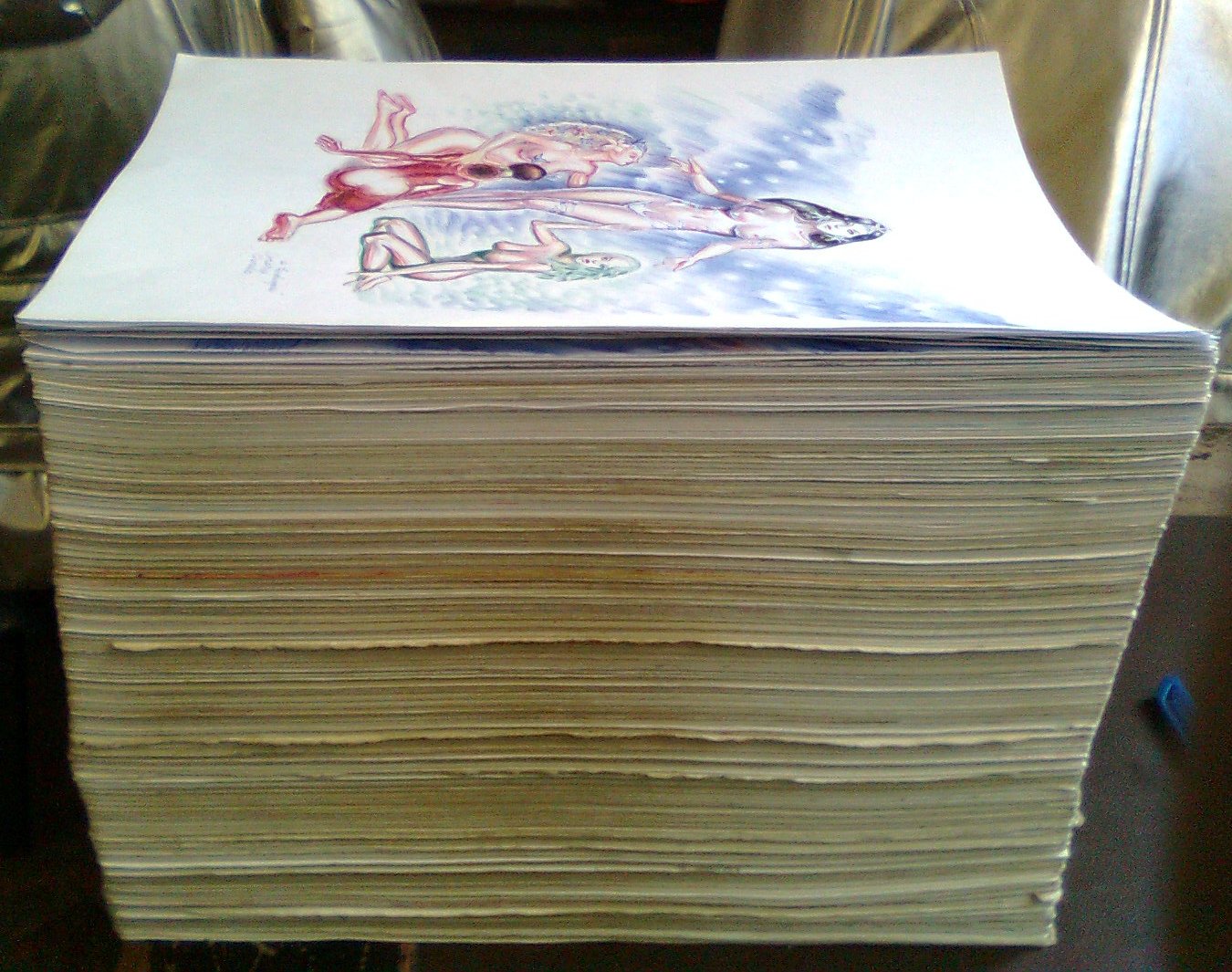 Acest munte de desene masoara 21 cm si cantareste 18 kg, 21 cm si 18 kg de vise de iubire care imi umleau zilele si noptile in care ma simteam atat de singura si simteam si eu nevoia de a iubi si de a fi iubita, 21 de cm si 18 kg de ganduri vise si sentimente neimpartasite ce ardeau in adancul sufletului meu si nu puteam sa le exprim decat prin creatiile mele