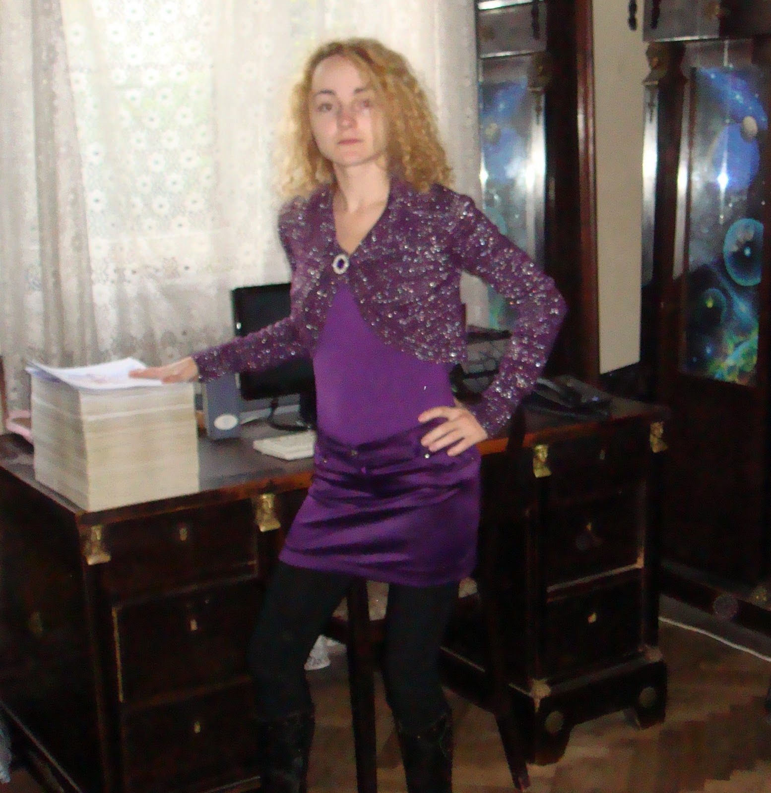 In aceste imagini sunt eu cu miile de desene (nuduri si alte desene prin care am incercat sa construiesc imaginea idealului meu de fumusete si de feminitate, imaginea celei pe care mi-o doresc langa mine) pe care le-am realizat in clipele mele de singuratate din ultimii 10 ani cand simteam nevoia de a iubi si de a fi iubita.