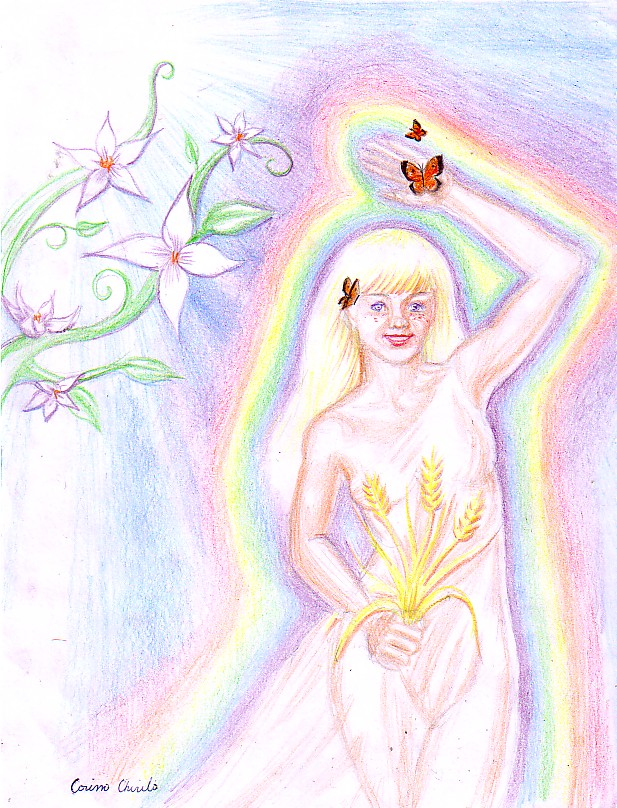 In primavara acestui an am vazut intr-un insectar in care era un fluture portocaliu care se numea Parthenos sylvia adica pe romaneste fecioara Silvia (In limba greaca parthenos = fecioara). M-am gandit imediat cum ar putea sa arate aceasta fecioara Silvia si parca o vedeam, tanara si frumoasa ca o primavara, cu parul de soare, cu o aura in culorile curcubeului si inconjurata, evident, de fluturi din specia Parthenos sylvia. Acesta este desenul prin care i-am dat viata fecioarei Silvia.
