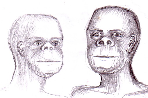 Am realizat aceste desene acum cativa ani. Acestea sunt portretele unor fiinte umanoide care au tot corpul acoperit cu par, fiind mult mai asemanatoare cu prehomonizii decat cu oamenii actuali. Era o perioada cand visam ca aceste fiinte erau undeva pe o alta planeta si civilizatia lor era chiar mai dezvoltata decat a noastra. In ultimul desen am incercat sa pun pe hartie ceea ce am visat intr-o dimineata: O asemenea fiinta si desenul din stang reprezentat pe unul dintre pereti, desen care probabil reprezinta o stea sau un alt corp di univers care emite niste unde electromagnetice sau chiar gravitationale