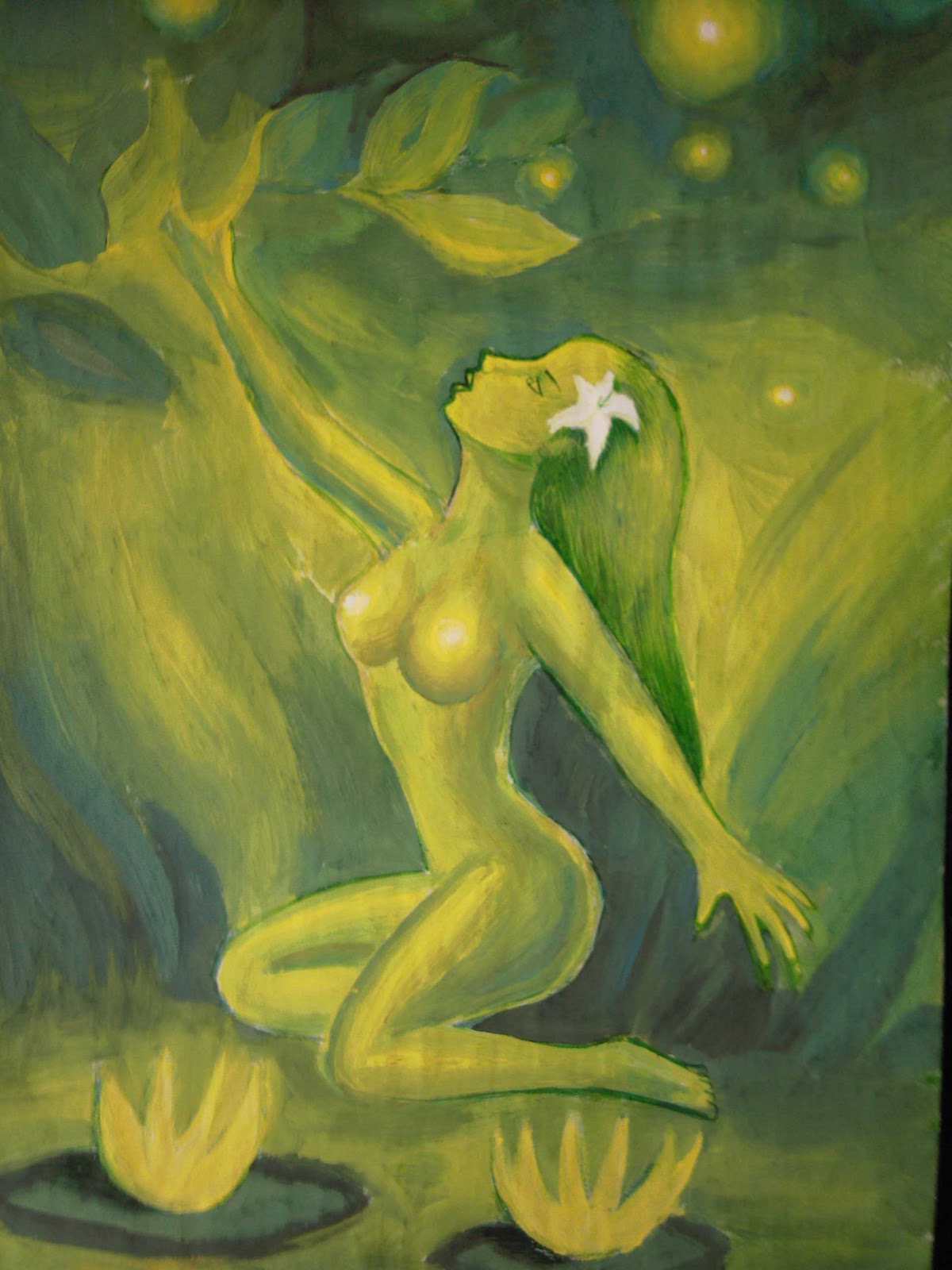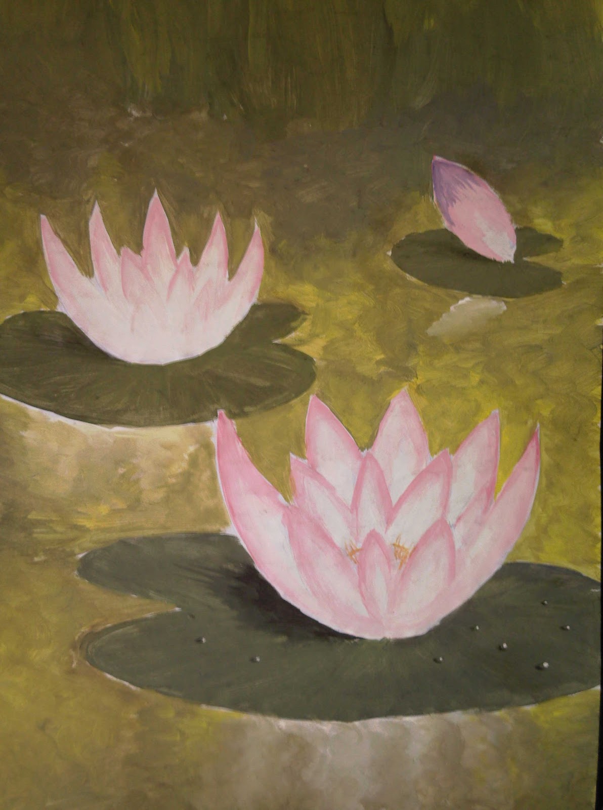 Cateva picturi inspirate din poezia „Lacul” de Mihai Eminescu in care a incercat sa pun in evidenta verdele naturii si galbenul florilor de nufar
