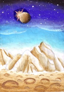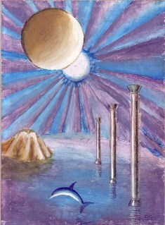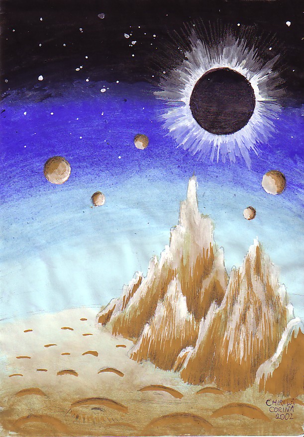Azi a avut loc o eclipsa partiala de soare. Am vazut si eu eclipsa dar nu se compara cu cea din 11 august 1999 care m-a impresionat puternic, eclipsa de soare fiind prezenta in multe dintre picturile pe care le-am realizat in 2000 si 2001 si in cateva picturi din 2002 si 2003.