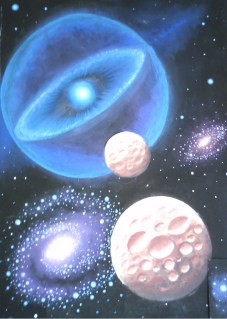 Din anul 2000, de cand m-am apucat de pictura supernova este unul dintre elementele mele preferate. Mereu m-au fascinat supernovele cu lumina lor, mai ales lumina albastra a stelelor de mare energie care explodeaza. In multe picturi si desene pe care le-am realizat pana acum apar supernove cu lumina lor albastra, stele albastre de mare energie ce explodeaza eliberand in spatiu o sfera de lumina.