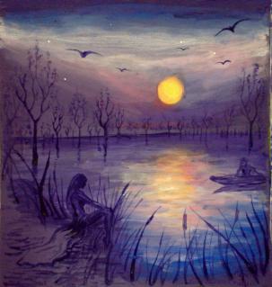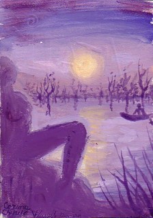 Acum cateva zile am realizat 4 picturi in tempera inspirate din melodia „Valurile Dunarii”, 4 picturi incarcate de romantism prin care am incercat sa creez filmul unei intalniri pe inserat, in lumina apusului de soare, undeva in Delta Dunarii: fata asteptand cu nerabdare pe mal, printre salcii, emotia puternica a apropierii, bucuria intalnirii si caldura imbratisarii. Cat de mult romantism exista in aceste creatii, incepand cu linia melodica valsul lui Iosif Ivanovici compus in 1880, continuand cu varianta pe care o canta Corina Chiriac si terminand cu picturile mele ce vibreaza de atata emotie, emotia unei intalniri pe malurile Dunarii in ale carei valuri se reflecta lumina calda a sorelui ce apune.