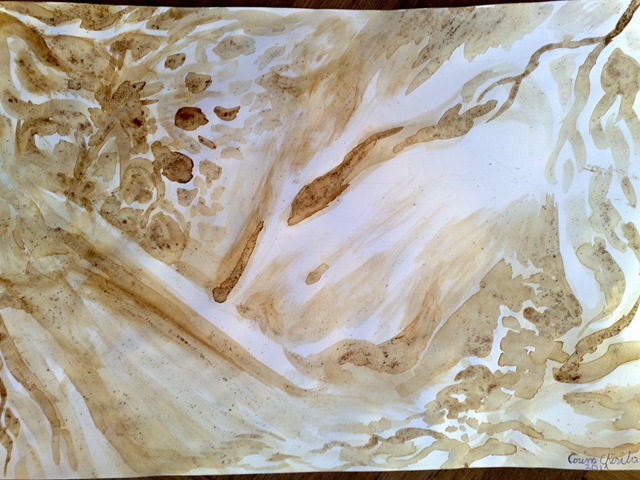 Azi deoarece eram foarte moleșita si adormita mi-am făcut o cafea dar era prea amara prea arsa si prea mucegăita ca sa pot sa o beau așa ca m-am gândit sa pictez cu ea. Era o cafea ieftina de ibric Mai jos e ceea ce mi-a ieșit.