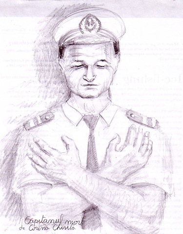 Acesta este căpitanul care a murit înecat după ce si-a aruncat marinarii si pasagerii peste bord si si-a scufundat propria corabie care si asa era in deriva in oceanul crizei dupa ce restul flotei a fost vânduta. Cred ca stiti despre cine e vorba. Cine nu si-ar dori sa-l vadă asa, măcar pentru salvarea corabiei.