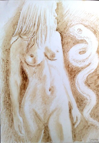 Eva pictura facuta cu cafea si ciocolata – Eve coffee and chocolate painting
