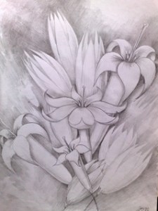 Niște flori albe desenate in creion
