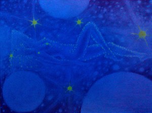 Niste desene fluorescente in lumina albastra a bradului de Craciun