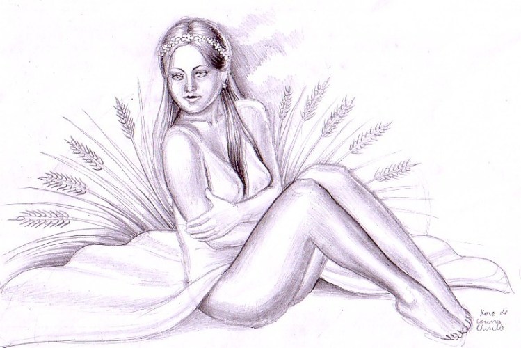 Kore- Zeita fecioara a primaverii – Fiica Demetrei – Desen in creion044
