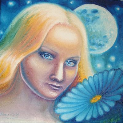 Cu siguranta va amintiti floarea mea albastra pictata in ulei pe panza. Deoarece tabloul s-a ingalbenit rau de tot si nici macar floarea nu mai era albastra si capatase o nuanta verzuie a trebuit sa intervin asupra acestui tabou. Mai sus este ceea ce a iesit.