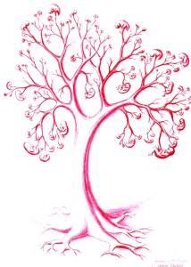 Azi, folosind doar un pix rosu am desensat un copac format din vase de sange cu embrioni si fetusi in diverse stadii de dezvoltare crescand ca fructele pe ramuri, fiecare ramura fiind un cordon ombilical pentru un copil care creste hranit prin sangele copacului