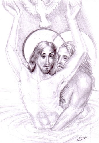 Iisus Hristos si Ioan Botezatorul, desen in creion