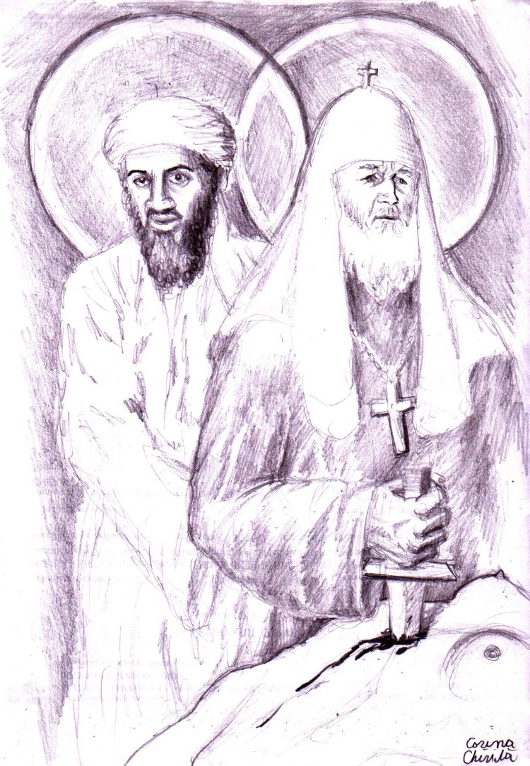 Un desen cu doi „sfinti” ai terorii reprezentativ pentru ortodoxie si toate religiile abrhamice