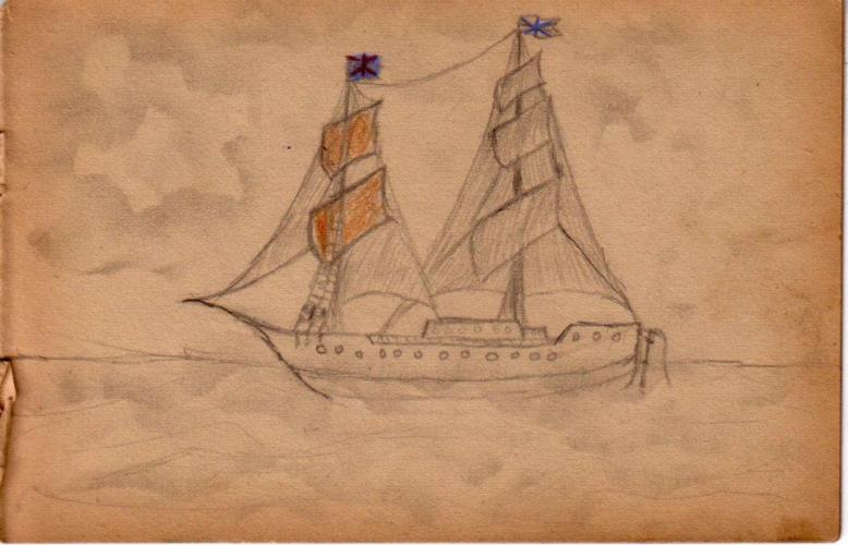 Corabie desenata in creion din anii 30 facuta de bunicul meu cand era copil
