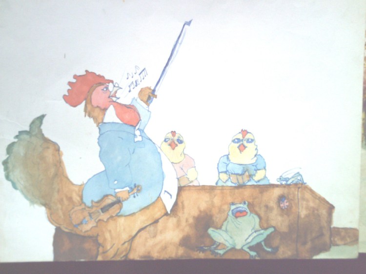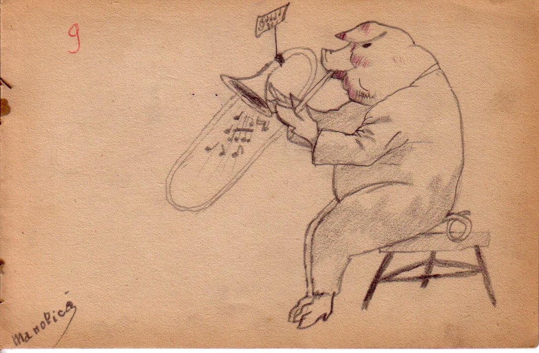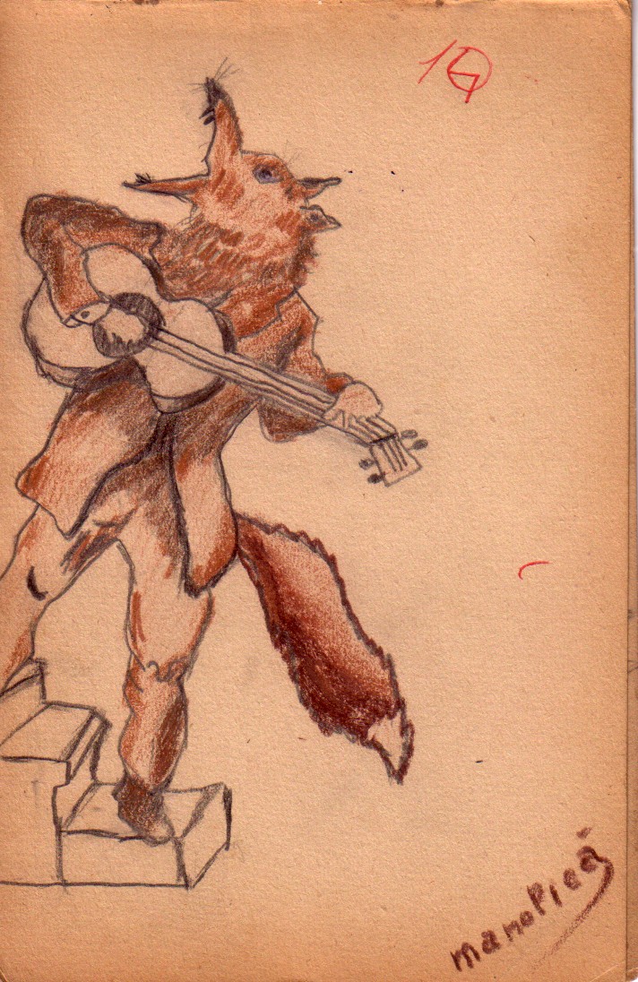 Cocosul dirijor desen facut de un copil din perioada interbelica care era Emanuel Chirila, bunicul meuCaine cantand desen vechi facut de copilul din anii 30, nimani altul decat bunicul meuPorcul muzical, desen in creion facut de Emanuel Chirila, bunicul meuVulpea muzicala cu chitara eiMagarul cu tobele, desen facut de Emanuel Chirila, bunicul meu, pe vremea cand era la scoala primara