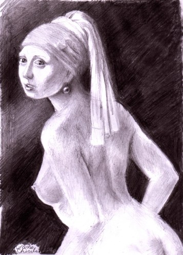 Girl with pearl earing mude pencil drawing – Fata cu cercelul cu perla reproducere dupa piictorul olandez Johannes Vermeer desen in creion Lasă un comentariu
