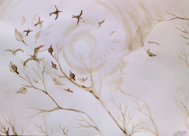 Pictura de toamna facuta cu cafea