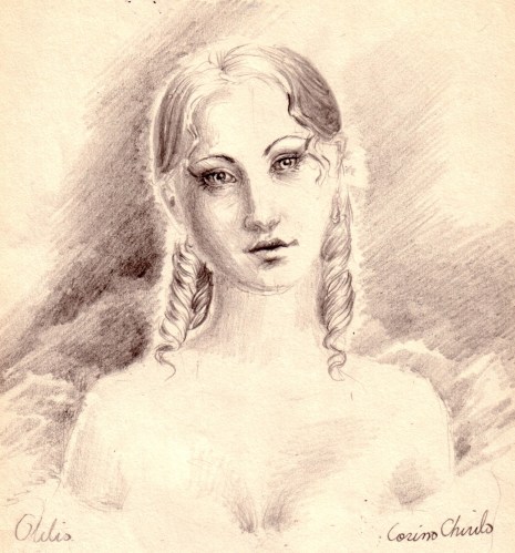 Otilia Marculescu din romanul Enigma Otiliei portret desen in creion