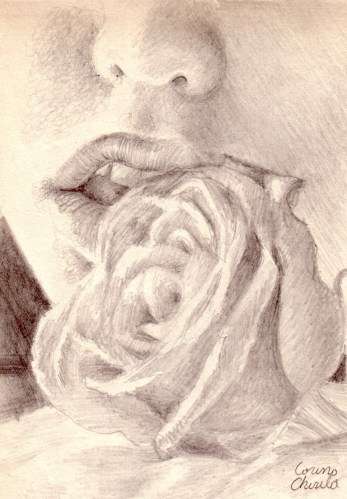 Kiss for a rose pencil drawing – Sarutand un trandafir desen in creion
