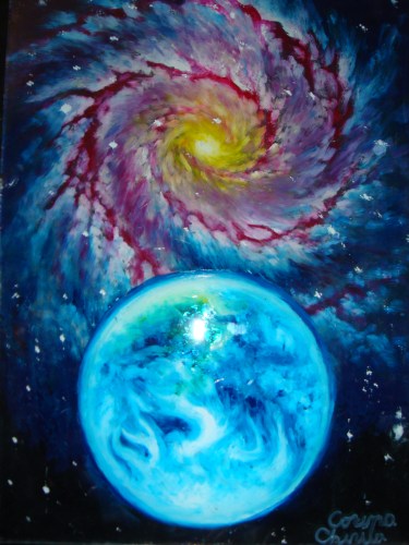 Pamantul si o galaxie peisaj spatial pictura pe sticla in ulei – Earth and a galaxy oil on glass space painting Lasă un comentariu