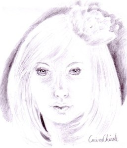 Portret de fata cu floare in par, desen in creion
