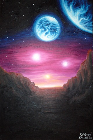 Situara in constelatia Scorpionului, planeta Gliese 667Cc este o planeta foarte asemanatoare cu a noastra unde foarte probabil exista si viata ce face parte din sistemul solar al stele Gliese 667C, o pitica rosie in jurul careia mai orbiteaza inca doua planete de tipul Pamantului ce pot gazdui viata. Din acest sistem mai fac parte inca o pitica rosie si o stea galbena. In acest tablou sunt celalalte doua planete de tipul Pamatului in lumina trioului stelar vazute de pe planeta Gliese 667Cc