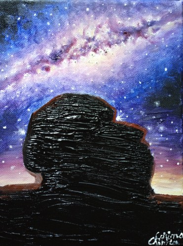 Sfinxul de la Varful Omu si Calea Lactee pictuira ulei pe panza