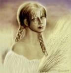 Azi am mai desenat un portret al Siminei din nuvela Padureanca a lui Ioan Slavici. In amebele desene Simina are lacrimi in ochi deoarece am vrut sa redau sentimentul de tristete ce pluteste in atmosfera nuvelei, dar si faprtul ca Simina era o fata sensibila si plangacioasa, iar spicele din bratele ei simbolizeaza graul, elementul in jurul caruia se invarte intreaga actiune a nuvelei (secerisul, moraritul).