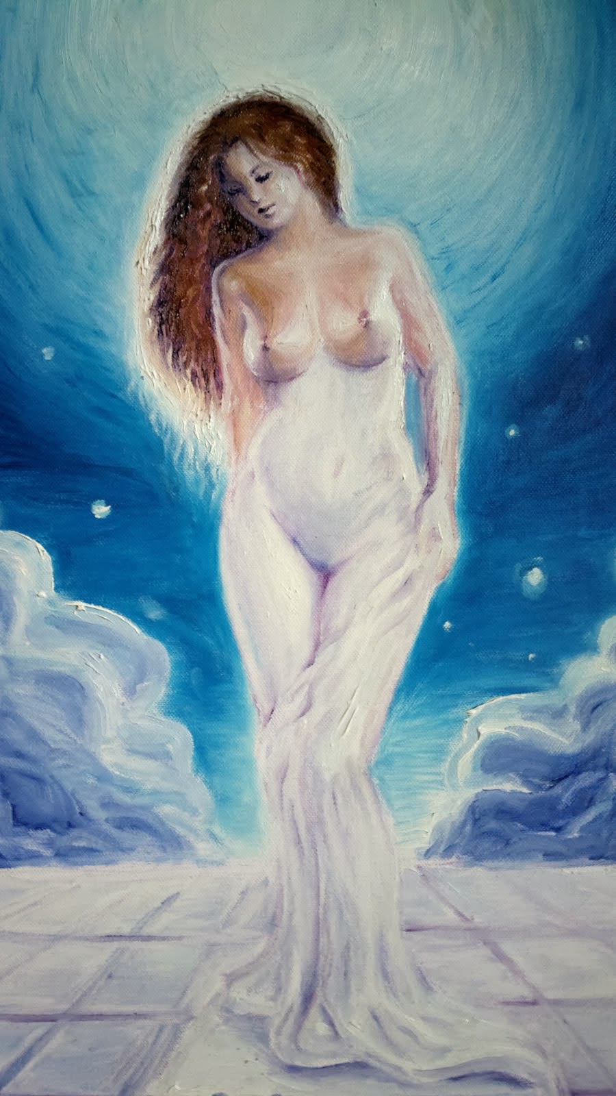 Azi am retușat tabloul meu având ca temă legenda statuii Galateea din mitologia greaca. Acum Galateea mea arata mult mai vie și desi nu am urmarit asta când o privesc îmî amintesc de o iubire pe care doar in vise am întâlnit-o, în visele mele fiind mereu alături de mine, o Eva ancestrala minții mele. Privesc tabloul și o văd pe ea cu formele ei rotunjite, cu pielea ei albă și fină, cu fata ei rotundă, cu părul ei castaniu ondulat si lung și îmî doresc să simt lângă mine prezența ei calda ce emana atâta iubire incât nu aș pleca niciodată din brațele ei dar Afrodita nu este nicăieri ca să-i dea viață acestei Galatee și să o aducă în viața mea.