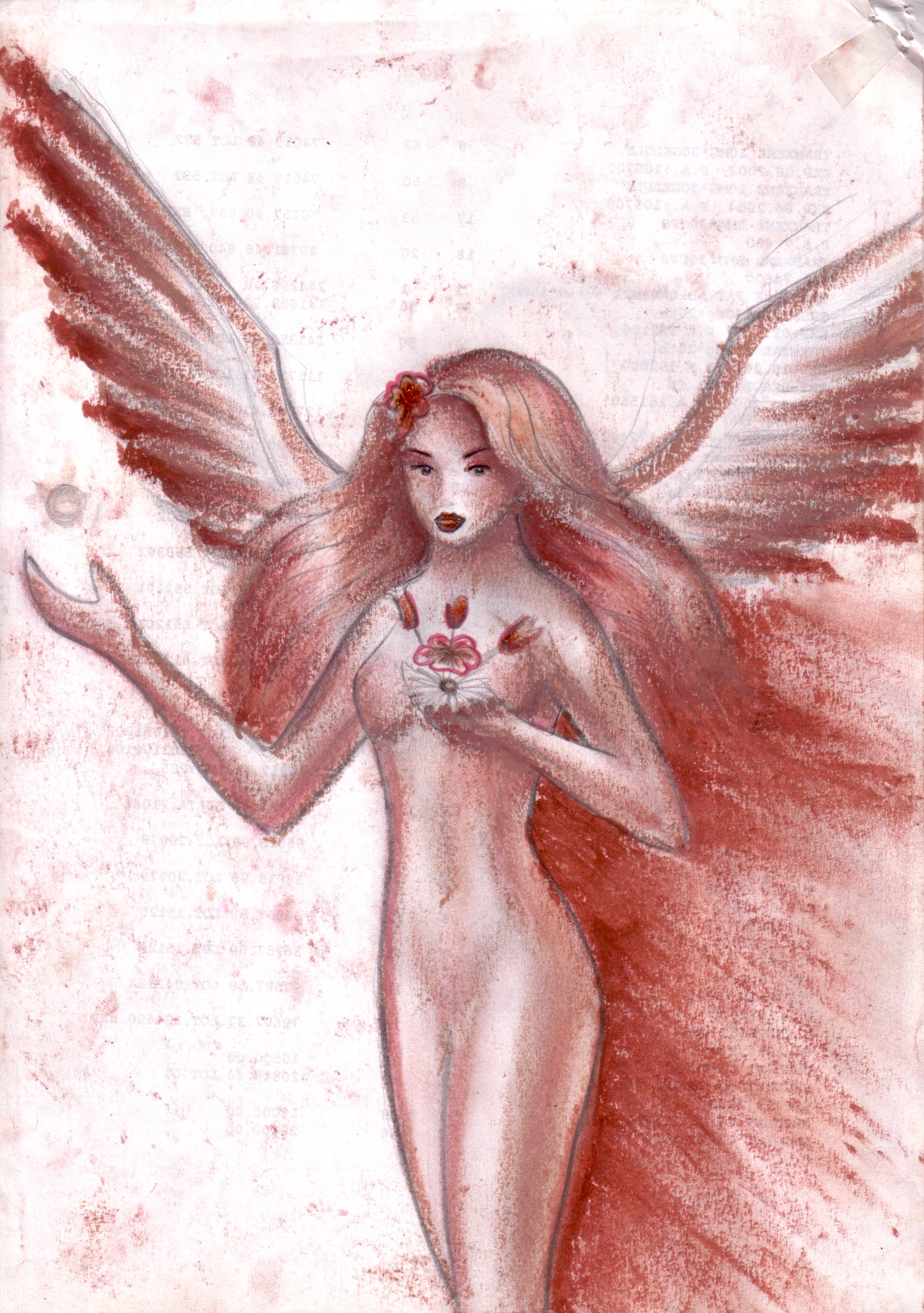Lipstick angel drawing Nud cu aripi de inger desenat cu ruj