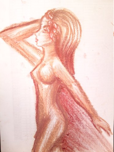 Lipstick drawing nude woman