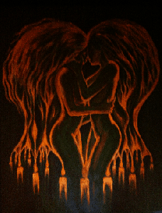 Flames of love and passion fluorescent painting – Flacarile pasiunii doua suflete indragostite pictura fluorescenta acrilice pe panza Lasă un comentariu