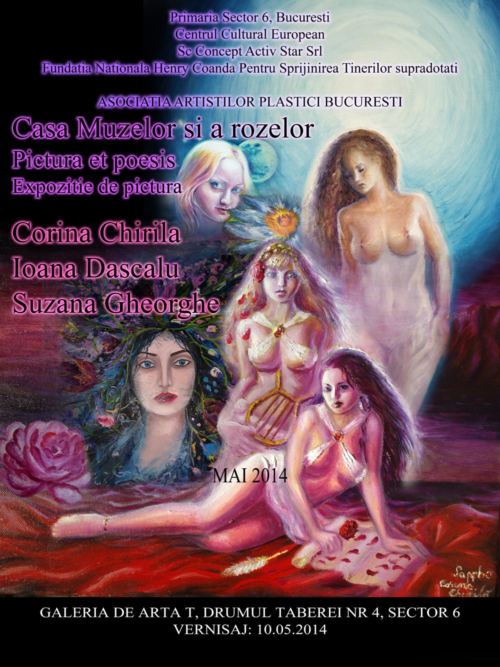 Expozitia de grup Casa muzelor – Pictura et poesis este deschisa la Centrul Cultural European sector 6, Biblioteca Culturala, Galeria T din Drumul Taberei nr 4 pe toata durata lunii mai. Alaturi de mine mai expun si Ioana Dascalu si Suzana Gheorghe. Va astept sambata, 10 mai, la ora 12, la vernisaj.