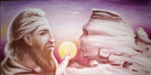 Un dac tarabostes si sfinxul din Bucegi pictura ulei pe panza mic