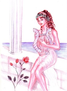 O fata din thaissosul poetei Sappho cantand la harpa pe malul marii