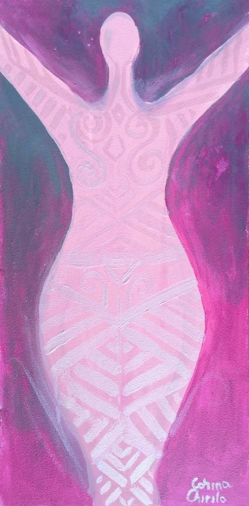 Am pictat si eu o zeita a culturii Cucuteni pornind de la statuetele care s-au gasit.
