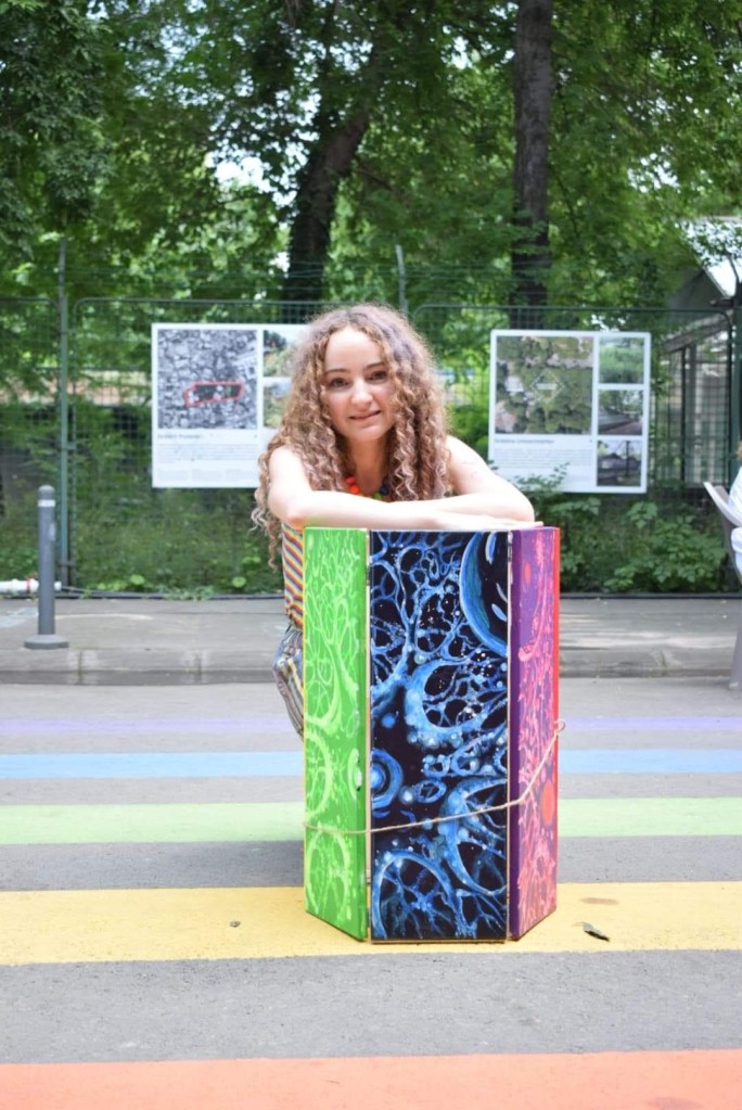 Ieri am participat la Street Delivery cu una dintre lulrarile mele, o pictura reprezentand o structura neuronala compusa din 6 panze in culorile curcubeului, si cu cateva dintre poeziile mele