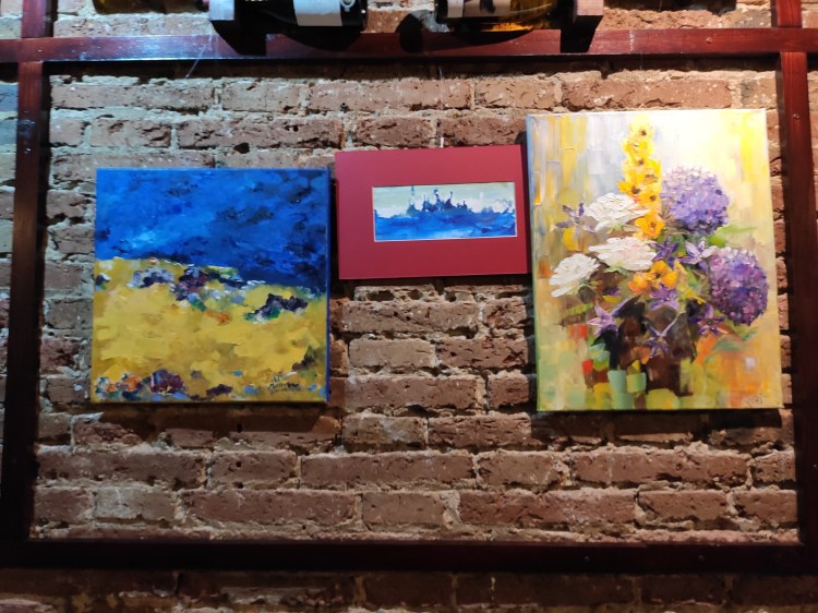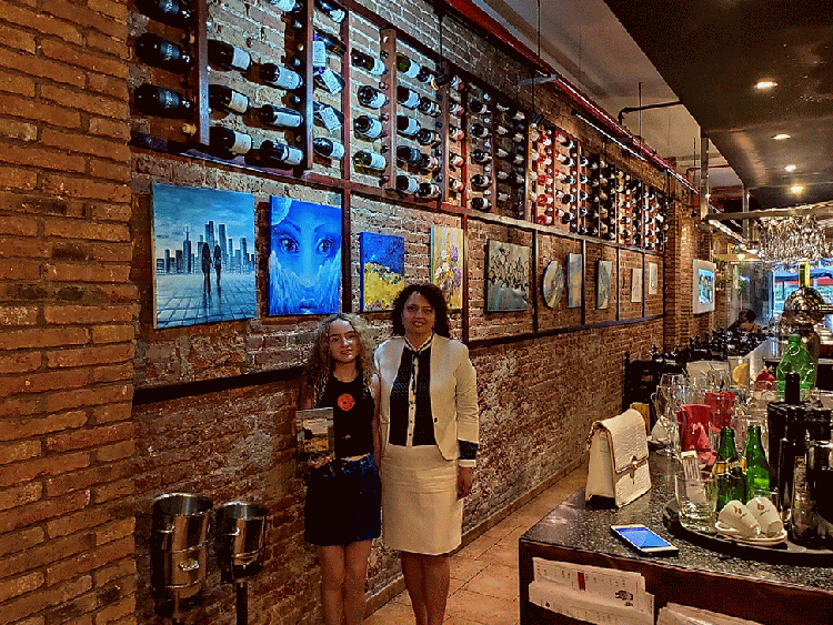 Doua dintre lucrarile mele, „Izvorul noptii” si o lucrare despre doua fete tinandu-se de mana in timp ce privesc orasul fac parte din aceasta expozitie.