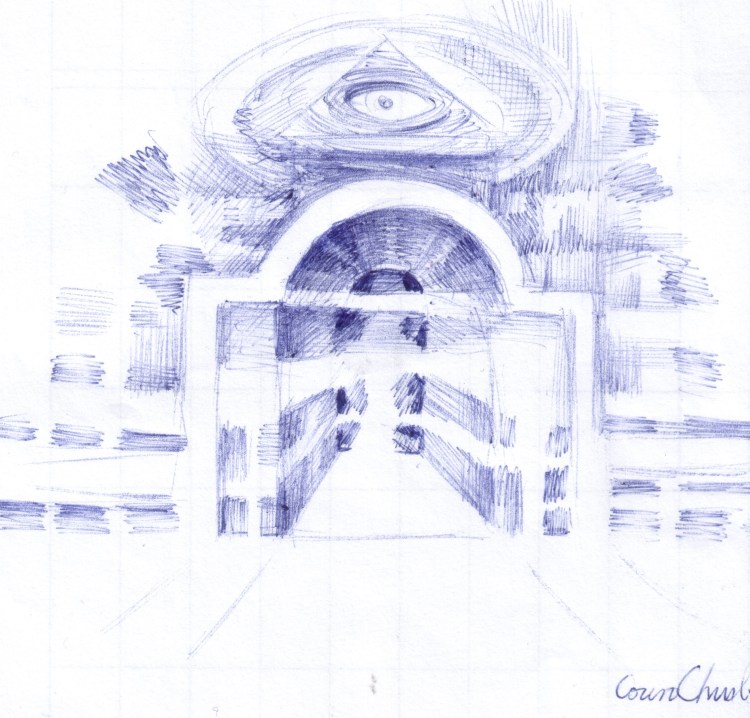 Am facut aceste desene ieri. Pur si simplu am desenat ce mi-a venit dupa ce am avut viziunea unui templu inchinat unei zeite ce troneaza intr-un altar aflat la capatul unui culoar sapat in piatra
