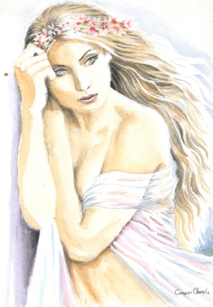 Azi am pictat o printesa trista, ganditoare, ingrijoata pentru viitor. Ea are in par cununa de flori de primavara si ar trebui sa zambeasca dar nu zambeste pentru ca ceva a intunecat primavara, umbrind zilele senine