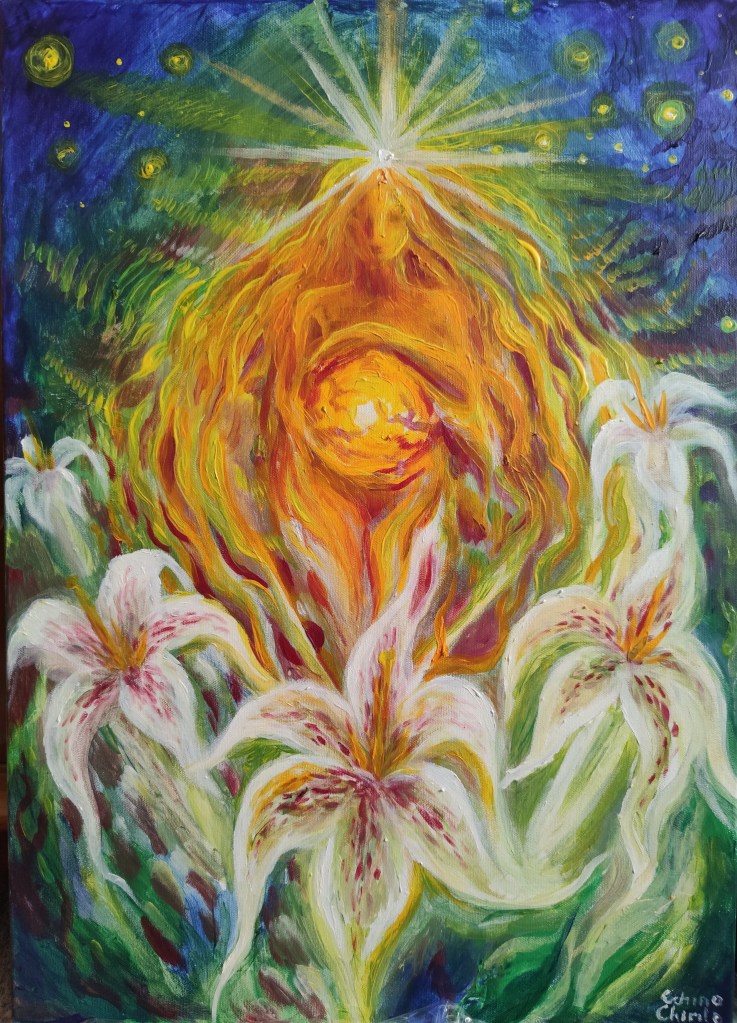 Aceste superbe versuri scrise de Mimi Szabo-Visan au fost sursa de inspiratie a creatiilor de mai sus, 2 picturi in acrilice pe panza prin care am redat imaginea unei zeite a iubirii in 2 ipostaze.