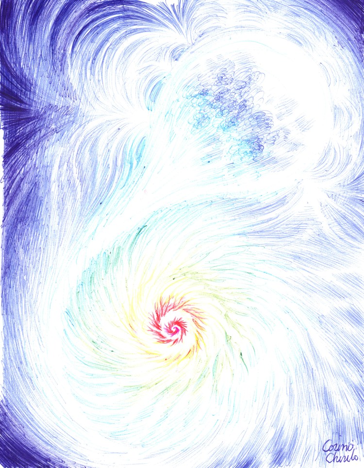 Stea absorbita de o gaura neagra, desen facut cu pixul