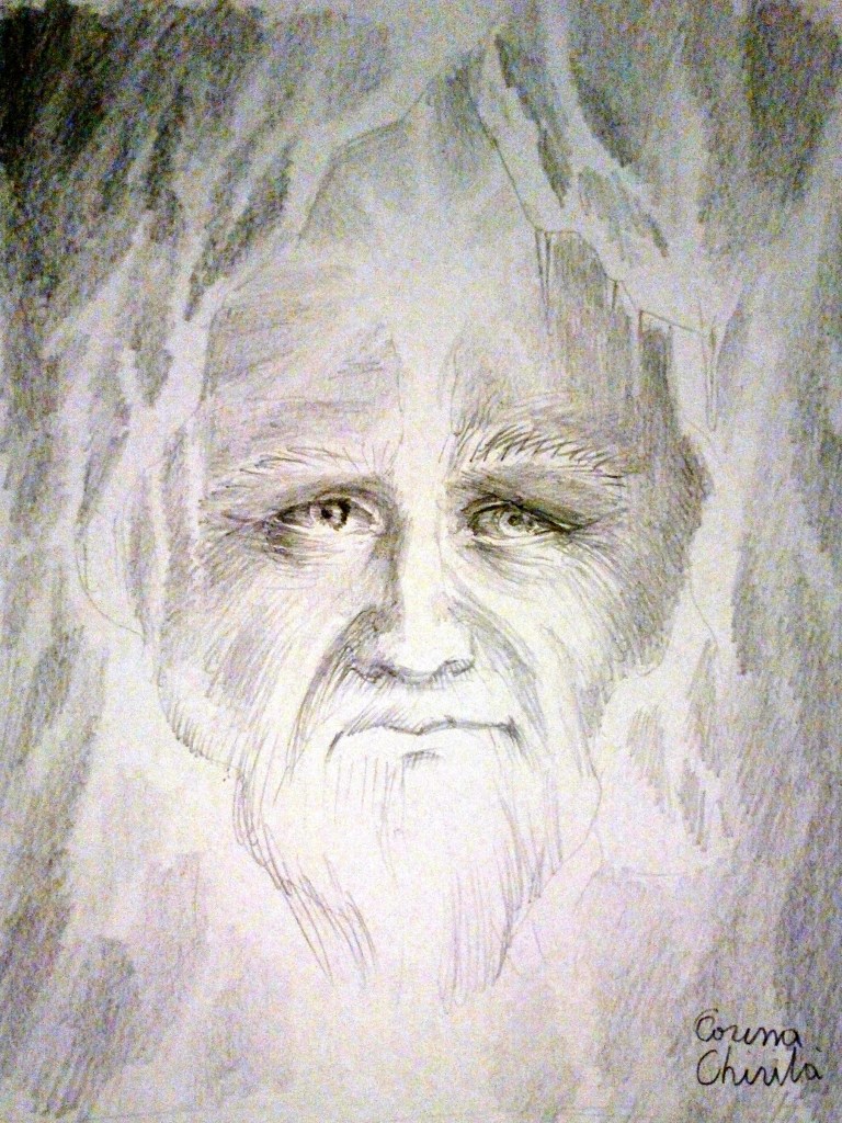 Un dac tarabostes si sfinxul din Bucegi, desen in creion