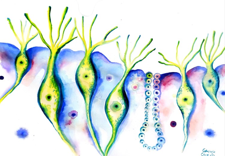 Celulele analizatorului olfactiv, acuarela Desene si picturi de Corina Chirilaacuarela, biologie, pictura, Pictura acuarelaanalizatorul olfactivLasă un comentariu Chemoreceptori din structura epiteliului oflfactiv, pictura acuarela Partajează asta: Dă clic pentru a partaja pe X(Se deschide într-o fereastră nouă) X Dă clic pentru a partaja pe Facebook(Se deschide într-o fereastră nouă) Facebook Dă clic pentru a partaja pe Pinterest(Se deschide într-o fereastră nouă) Pinterest Apreciază Încarc... Similare